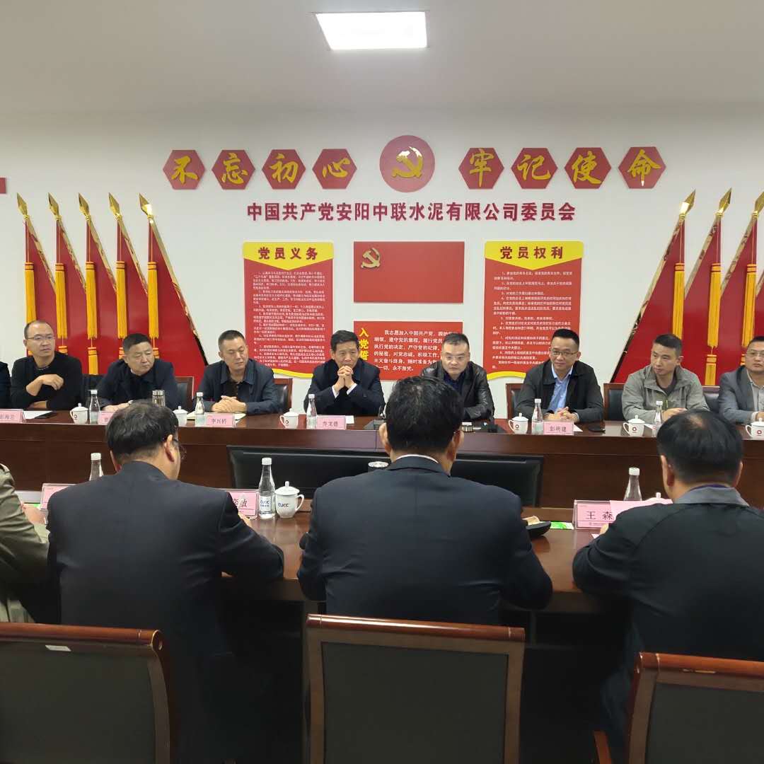 2020年10月14日,中國建筑材料聯(lián)合會(huì )會(huì )長(cháng)喬龍德及江油市政府一行蒞臨安陽(yáng)中聯(lián)調研工作。河南區副總裁、安陽(yáng)中聯(lián)黨委書(shū)記、總經(jīng)理黃頌高、河南區副總裁劉奕敏陪同調研。喬會(huì )長(cháng)先后實(shí)地參觀(guān)了生產(chǎn)一線(xiàn)、企業(yè)展廳,隨后召開(kāi)座談會(huì ),江油市副市長(cháng)周世明一行10人、安陽(yáng)中聯(lián)班子成員、中層正職以上人員參加了座談會(huì )。